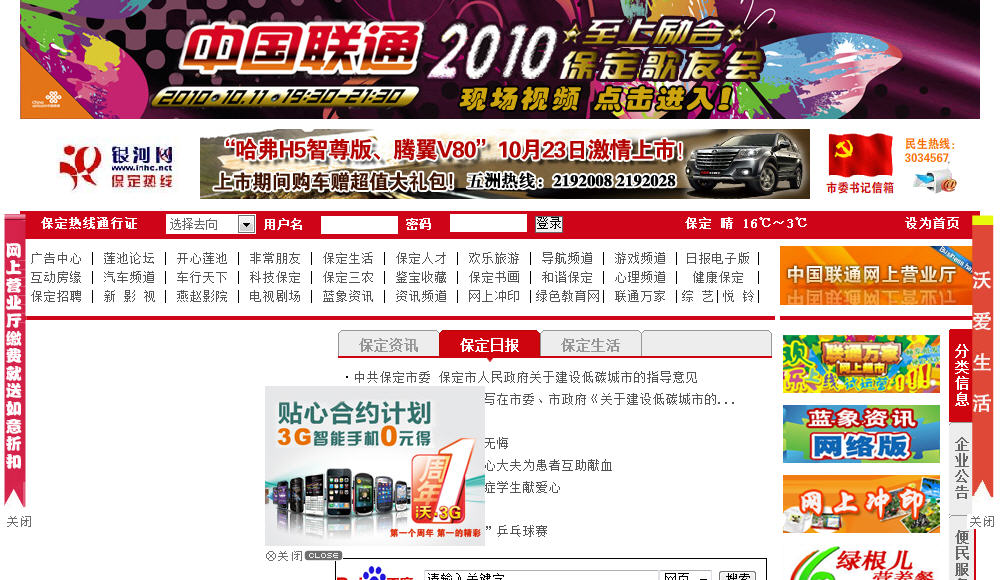 保定熱線是以廣告中心,蓮池論壇,開(kāi)心蓮池,非常朋友, 快遞公司,家政服務(wù),醫(yī)療衛(wèi)生,保定美食,火車(chē)售票,汽車(chē)陪練,汽車(chē)美容,汽車(chē)銷(xiāo)售等為主的門(mén)戶(hù)網(wǎng).
